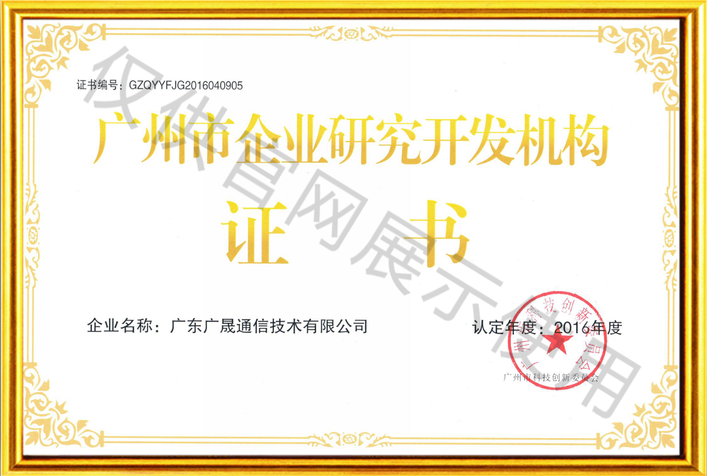 广州市企业研究开发机构证书